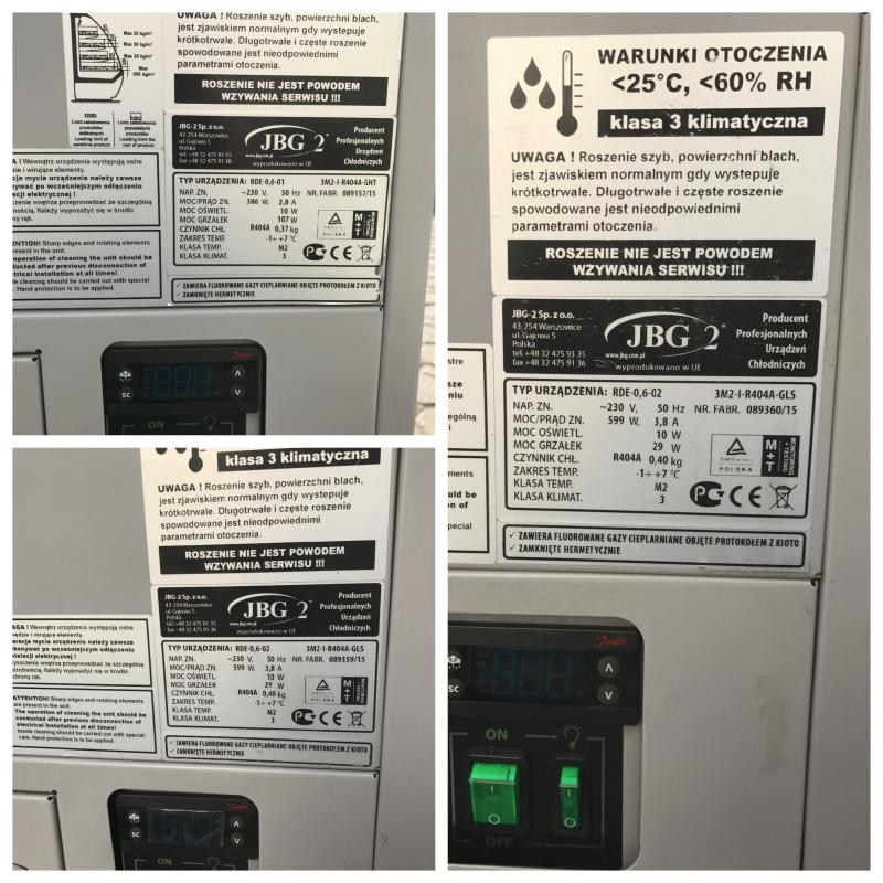 Lada chłodnicza firmy JBG2 model RDE-0,6. Rocznik 2015 r. Jest używana po gruntownym przeglądzie. Stan bardzo dobry. Atrakcyjny wygląd. Wyposażenie lady (zamknięta) JBG2 model RDE-0,6-01 : – agregat wbudowany – chłodzenie dynamiczne – szyba gięta, uchylna – tylne drzwiczki zespolone – uchylne – trzy rzędy półek szklanych + dolny poziom – podświetlenie każdej półki LED – sterownik elektroniczny – automatyczne odparowanie skroplin – zakres temperatury: +1 ÷ +7oC Wyposażenie częściej otwartej JBG2 model RDE-0,6-02: – agregat wbudowany – chłodzenie dynamiczne – trzy półki ekspozycyjne na stelażu z blachy nierdzewnej + dolny poziom – podświetlenie każdej półki LED – sterownik elektroniczny – automatyczne odparowanie skroplin – zakres temperatury: +1 ÷ +7oC wymiary – długość 1810 mm – głębokość 800 mm – wysokość 1280+/-10 mm Cena dotyczy jednej zestawu przedstawionego na zdjęciach. Cena 5800 zł +23%VAT.