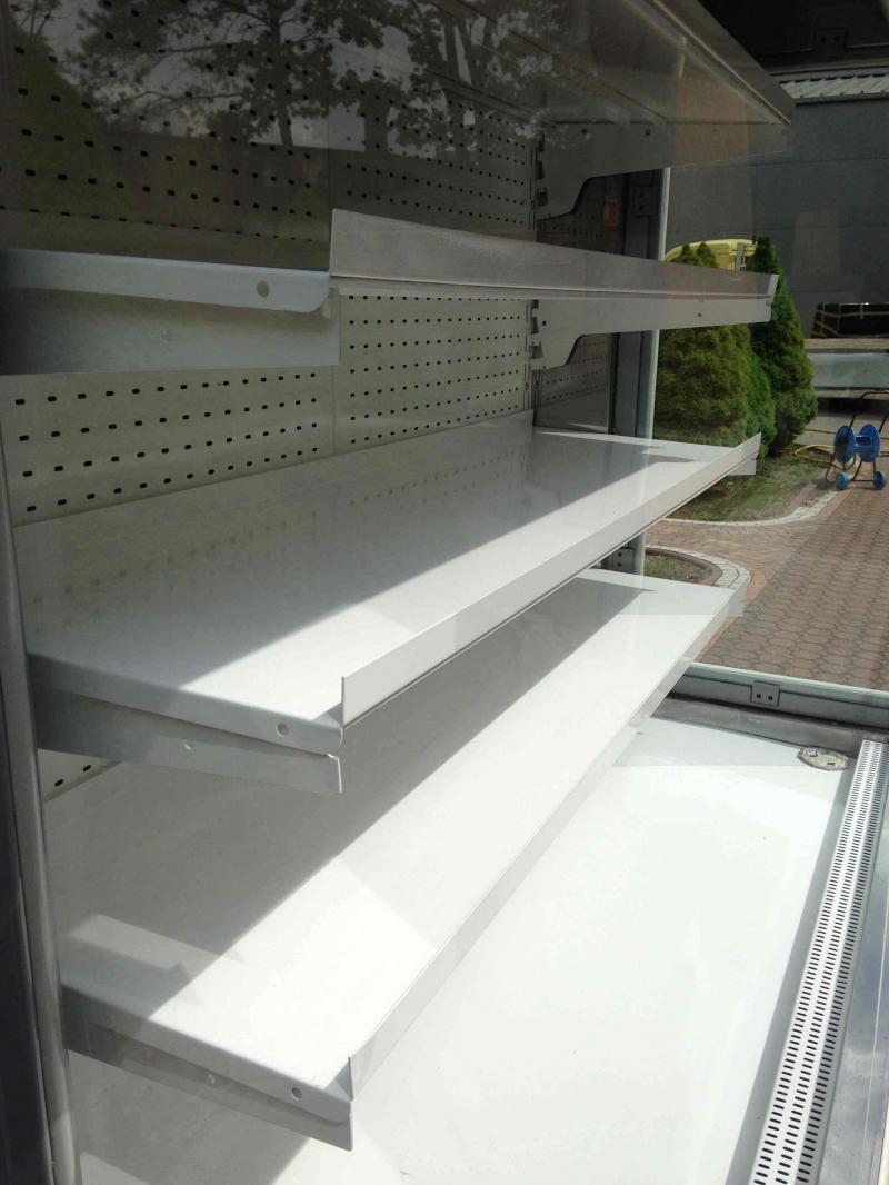 Regał chłodniczy firmy MAWI dł 1,6 m. Jest używany po gruntownym przeglądzie. Stan idealny. – energooszczędny – chłodzenie dynamiczne – odszranianie automatyczne – elektroniczny regulator temperatury z cyfrowym wyświetlaczem – zasłona nocna w postaci rolety – oświetlenie wewnętrzne – półki ekspozycyjne z możliwością zmiany wysokości oraz kąta zawieszenia + poziom „0” – możliwość zainstalowania haków masarskich – boki z tworzywa sztucznego z szybą – ekologiczna izolacja z pianki poliuretanowej – nóżki umożliwiające wypoziomowanie urządzenia – odpływ kondensatu do pojemnika na skropliny – długość 1530 mm – głębokość 900 mm – wysokość 1990 mm – zakres temp. wnętrza: +1ºC do +10ºC (Przy temp. otoczenia +25ºC i wilgotności wzgl. 60%) Cena dotyczy regału o dł. 1,6 m przedstawionego na zdjęciach. Wystawiamy fakturę VAT. Dostępny jest również ten sam model regału o długości 2,5 m oraz 5 m.