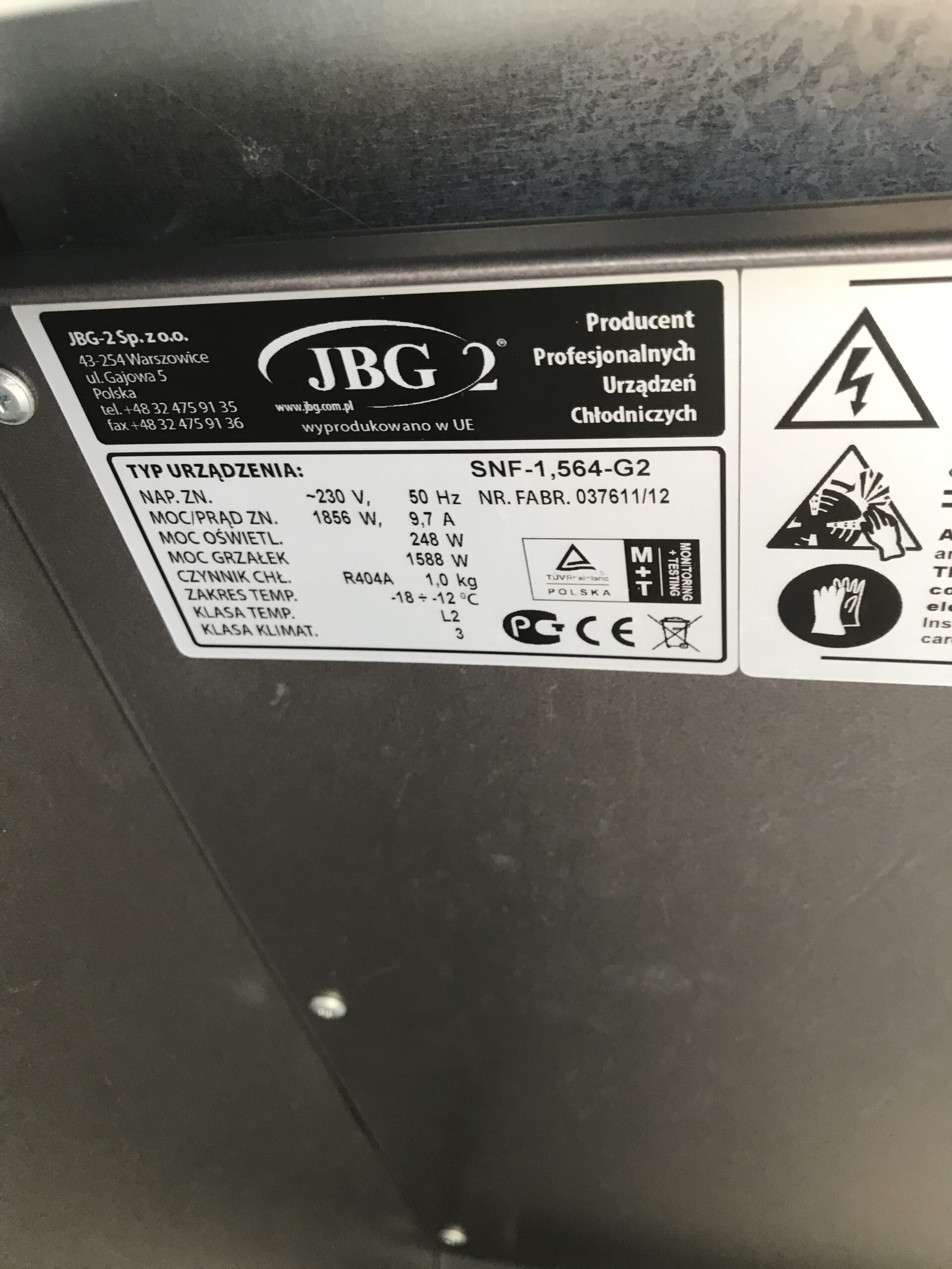 Szafa chłodnicza firmy JBG2 model SNF-1,564-G2.