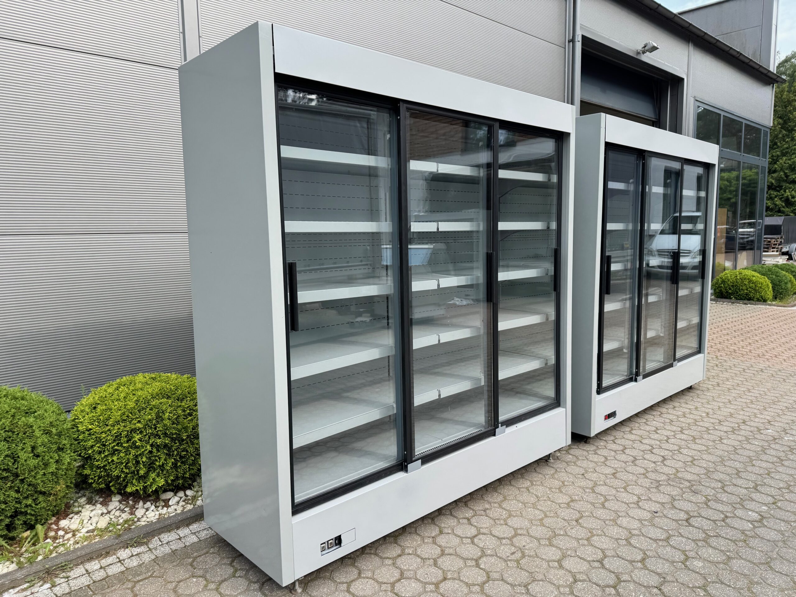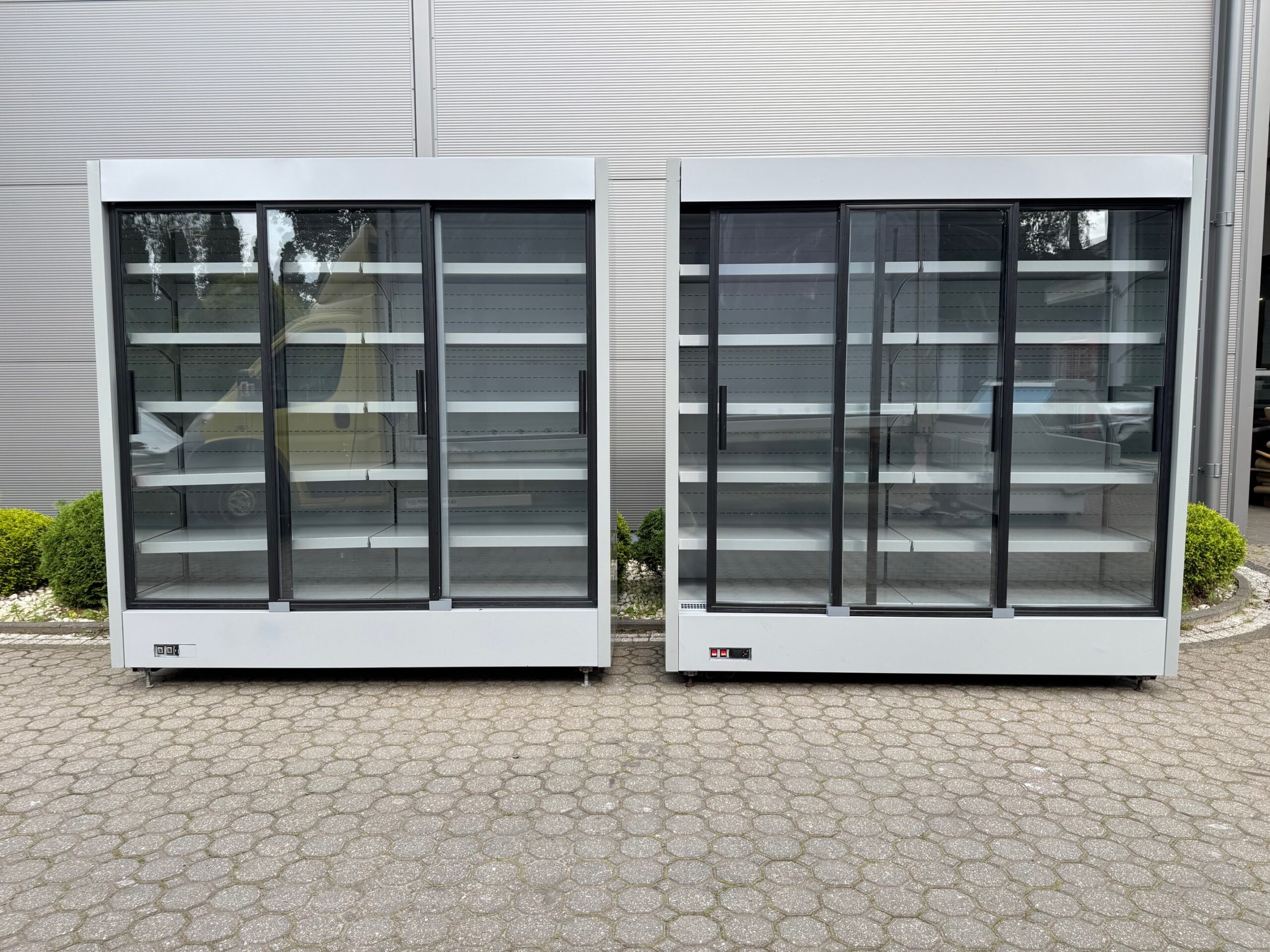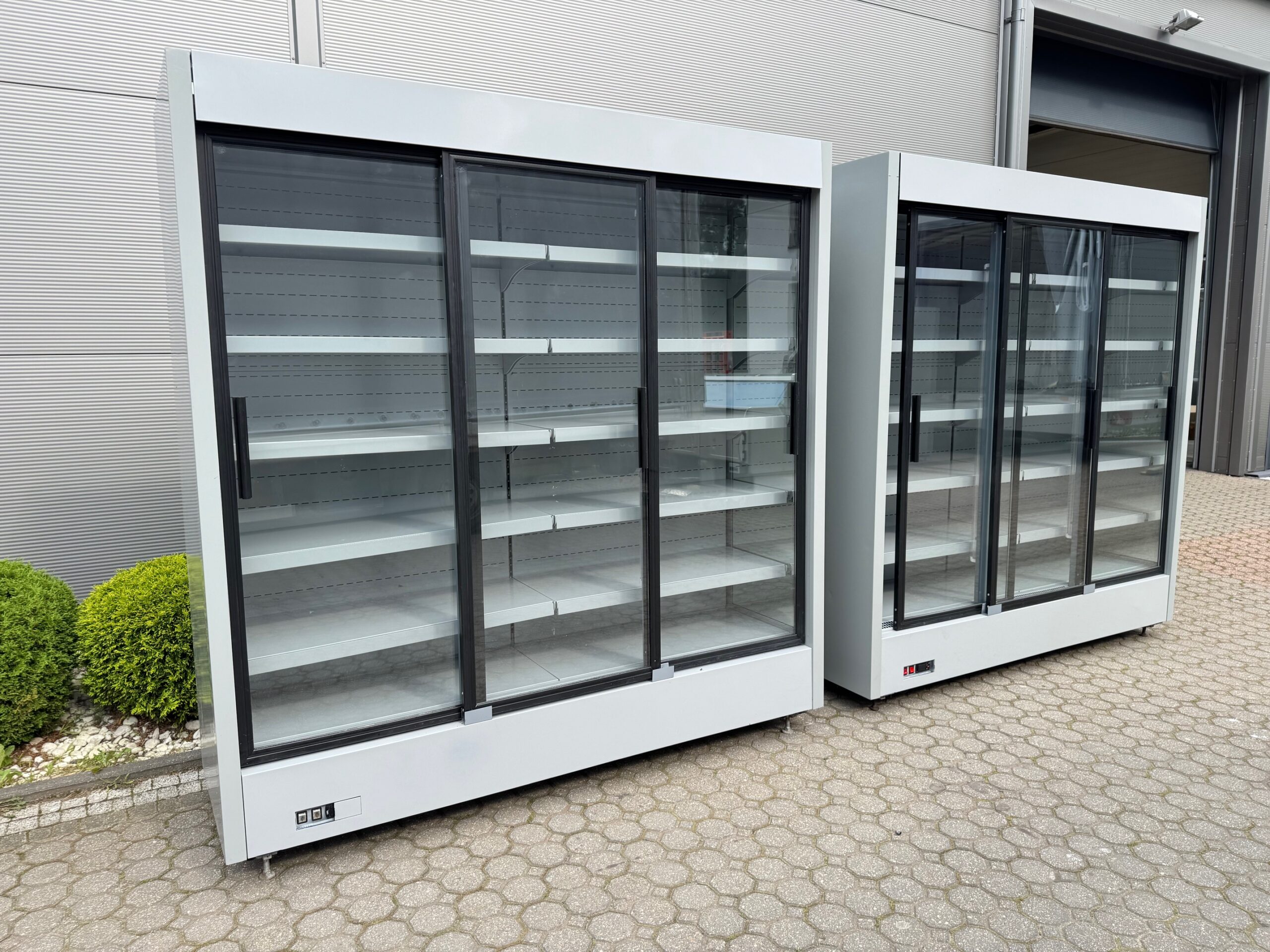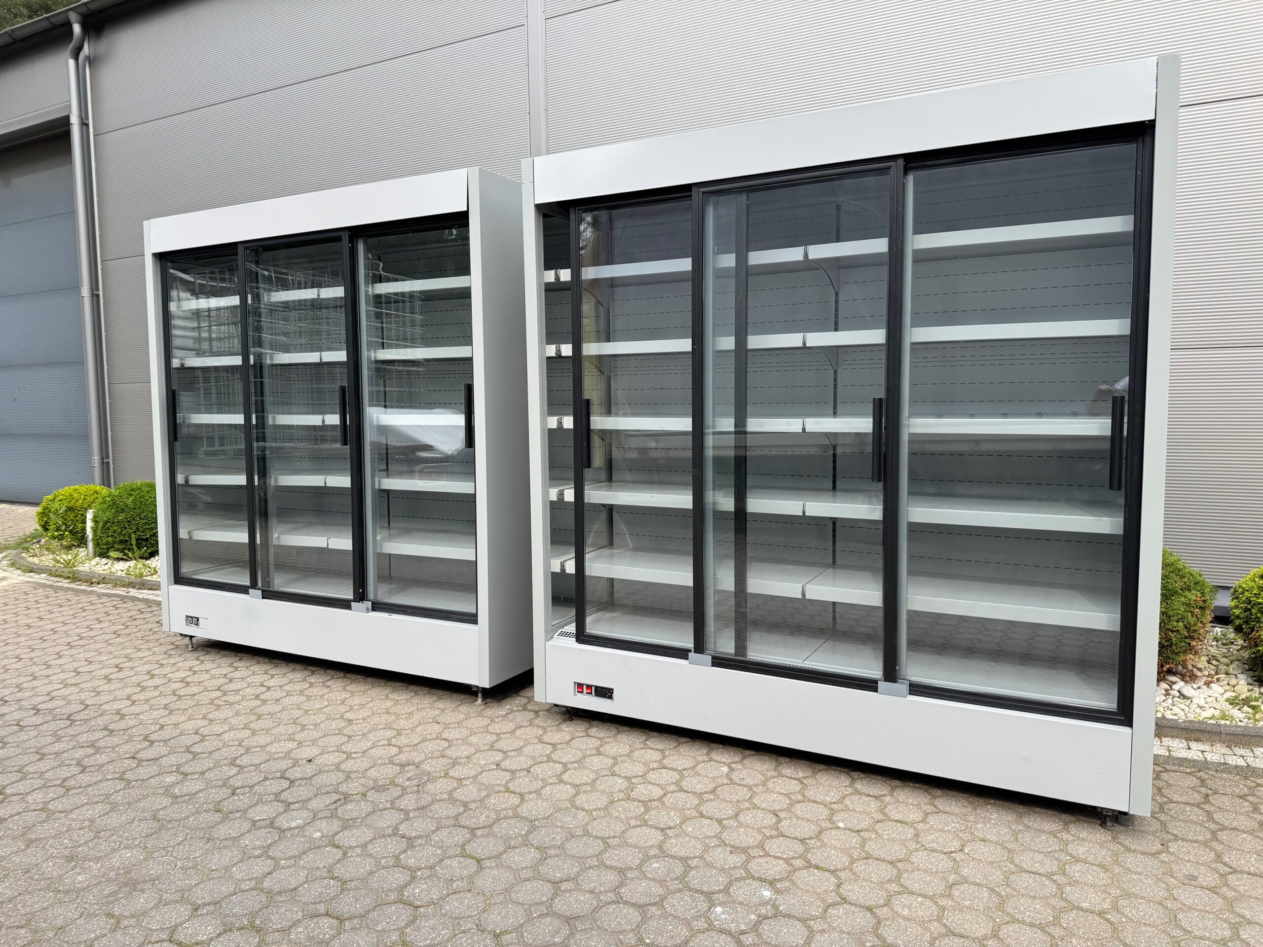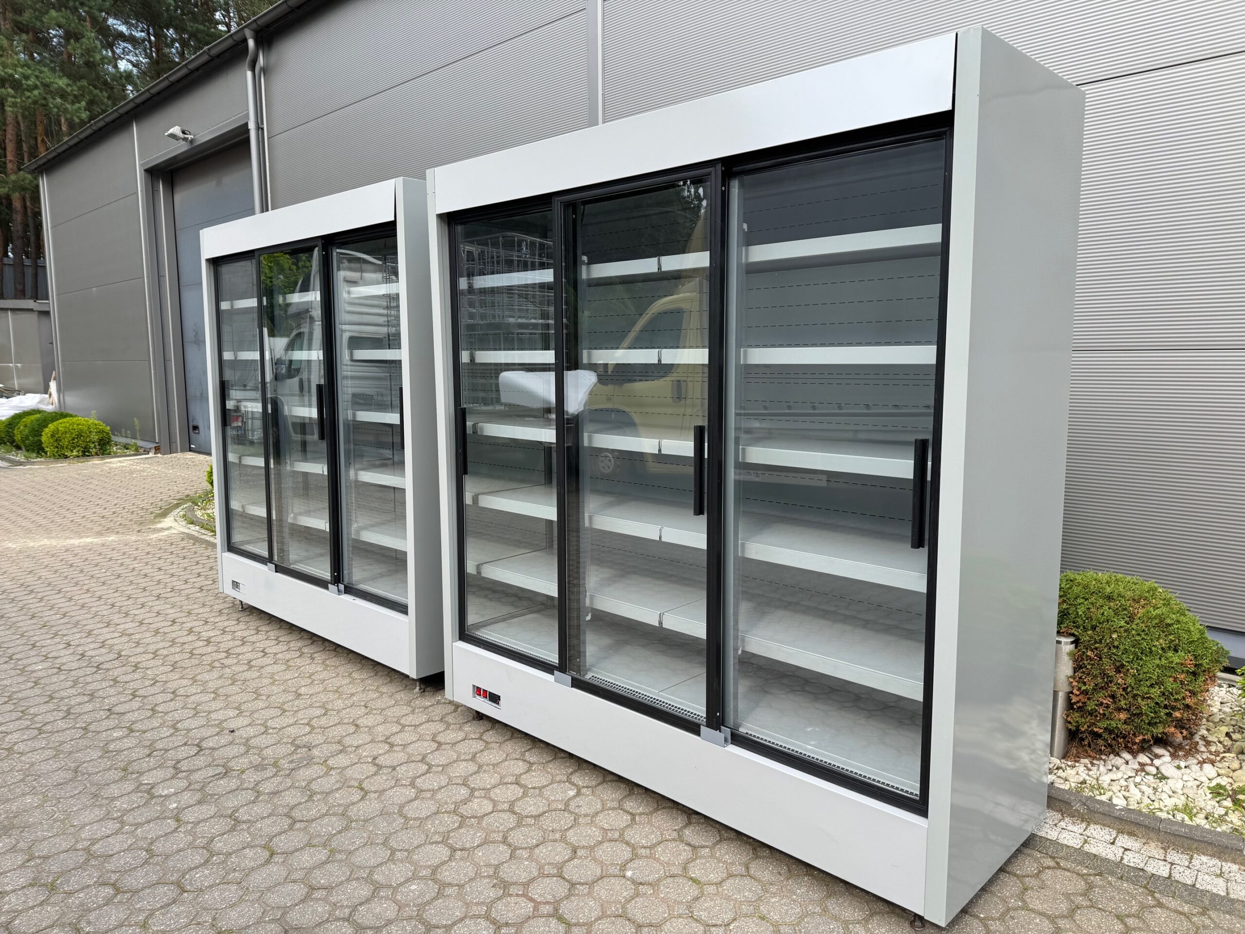 Cena regału dł. 1,9 m 5320 zł + 23% VAT za szt. (2800 zł + 23% VAT za 1 metr bieżący) z drzwiami przesuwnymi, bez agregatu (pod agregat zewnętrzny)