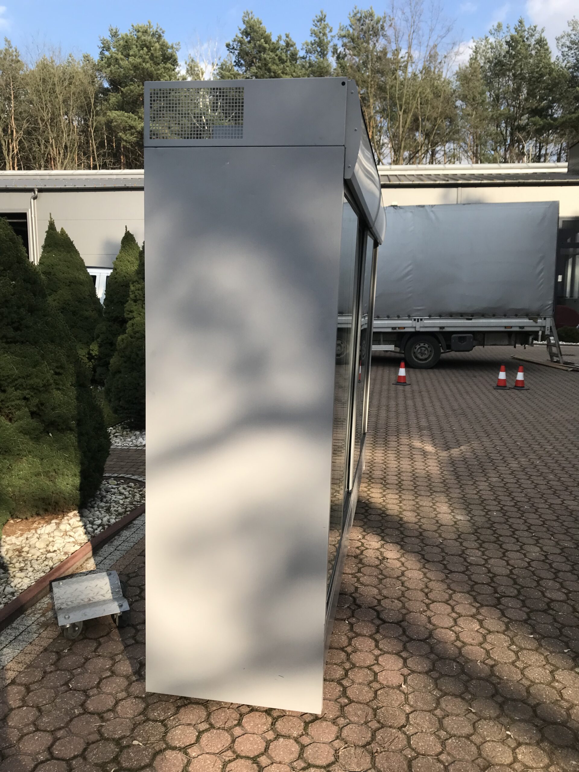 W regale zastosowano zamiast otwartej przestrzeni wystawowej, drzwi przesuwne z szybą zespoloną z systemem samozamykającym. Urządzenie jest bardzo estetyczne i umożliwia konfigurację jego wyglądu. Górny panel reklamowy podświetlany jest świetlówką, istnieje możliwość wyboru koloru pleksi.